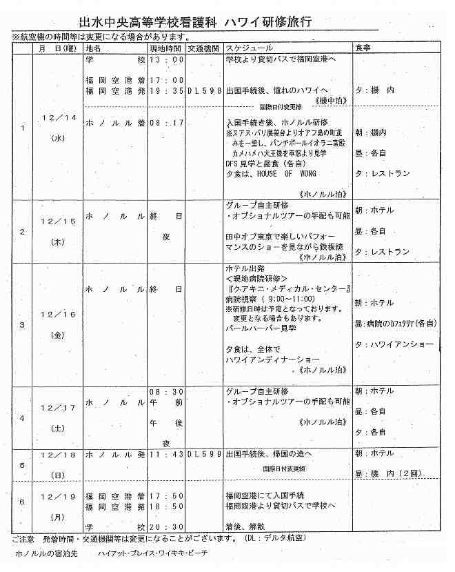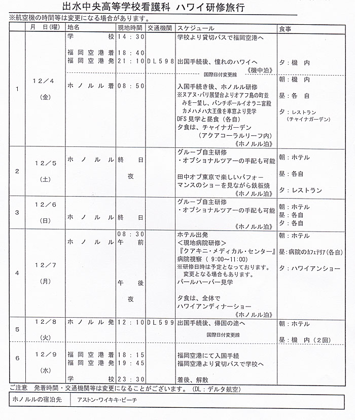 [48] 専門課程1年生ハワイ研修について(行程) [2016年12月13日 18時07分07秒]