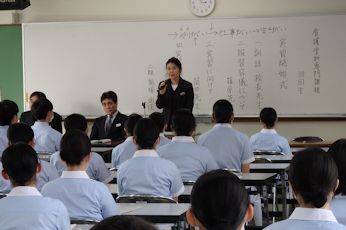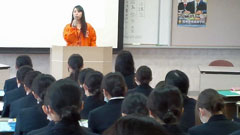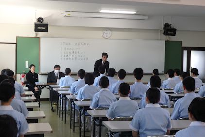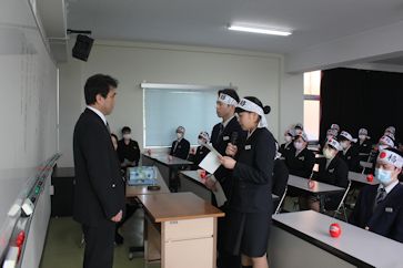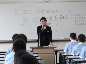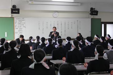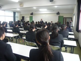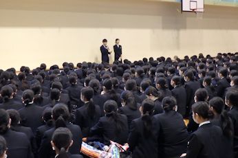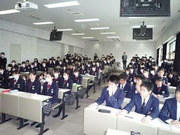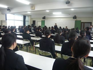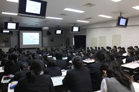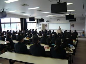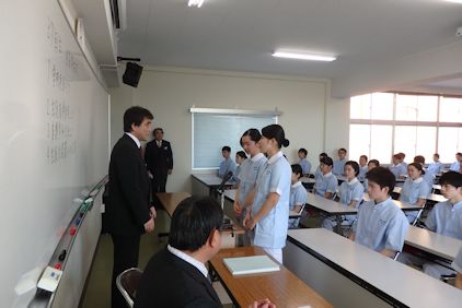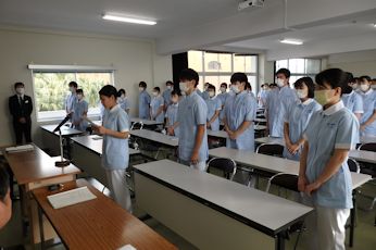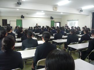 | 2月2日6限目に、専門課程1年生(38回生)の実習開始式が行われました。専門課程1年生は2月5日から領域毎に分かれ実施され、合計6週間の実習を行う予定となっています。 学校長はマザーテレサの言葉を引用し「昨日は去りました。明日はまだ来ていません。私達は今日あるのみです。」と話され、心を込めた援助・実習のあるべき姿を訓話として生徒に送りました。看護学科主任は「避けては通れない実習。自分から勉強に、臨床に向かう」と話し、最後に「頑張れば、感動!」という言葉で生徒を激励しました。実習生代表者は「自分は何を学びたいのか、どのように活動したいのかという事を明確に持ち実習に臨むことが学習を深める第1歩」「母性看護学実習では、母親と児を1つとして捉え多くの視点とアプローチの方法を身につけたいです」と力強く決意の言葉を話してくれました。 専門課程へ進級し、初めての病院実習となります。より高度な知識・技術・態度を身につけるため、精一杯頑張ってほしいです。 実習では多くの医療機関にお世話になります。ご迷惑をおかけしますが,最後までよろしくお願いします。