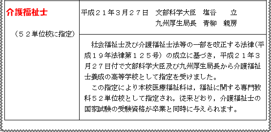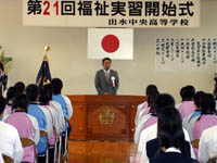 | 本校の医療福祉科2年生・1年生は,今年度から変わった真新しいユニフォームを着用して下記のように,10月9日(金)午前10時から約1時間10分,本校剣道場で,来賓,保護者の皆様の多数の御臨席の中,医療福祉科3年生も出席して「第21回福祉実習開始式」を盛大に行いました。 1 日 時 平成21年10月9日(金)10:00〜11:10 2 場 所 本校剣道場 3 対 象 医療福祉科2年生・1年生(3年生も参加して祝福を贈る) 4 来 賓 特別養護老人ホーム紅葉園長田代幸雄様,近江温泉病院人事学生本部長上野将志様,PTA笹山欣悟会長様 今回の第21回福祉実習開始式では,2年生は,医療福祉科中堅学年としての自覚を促すとともに,施設実習へ向けて意識の高揚を図ることを目標にしています。また,1年生は,新カリキュラムによる初年度実習生として,介護実習への自覚を持たせることが必要となり1年次に初めて行いました。 実習開始式では,松ヶ野学校長から2年生は施設実習の合格証書と実習心得,1年生は実習許可書と実習心得を綴じるファイルと証書を一人一人が受け取りました。ファイル表紙の「思いやり」と「学校名と氏名」は松ヶ野学校長直筆のものです。 2年生・1年生は,松ヶ野正弘学校長の式辞や来賓(特別養護老人ホーム紅葉園長田代幸雄様,近江温泉病院人事学生本部長上野将志様),PTA笹山欣悟会長様からのお祝いの言葉,3年生菖蒲あかねさんから優しい激励のことばを頂きました。松ヶ野校長は「実習を許可された2年生・1年生の皆さんは,介護福祉士としての臨地実習の第一歩を踏み出ことが許可され入所者の方々を直接介護のできる待望の場面が待っています。いよいよ今年度から変わりました真新しい素敵なユニフォームを着用して,2年生は今月の19日から本格的な実習が始まります。1年生は12月14日(月)の社会福祉協議会見学実習から始まります。積極的に取り組み充実した実習にしてください。」と式辞を述べられました。菖蒲さんは,「私が施設実習で感じたことは,先ずあいさつです。明るく元気なあいさつは利用者様に心を開いていたたくきっかけになります。次に笑顔です。そして,話に耳を傾け,相手の立場に立って考え行動することです。何事にも積極的な姿勢で取り組むことが大きく成長することになります。」と激励しました。 そして,花束が3年生の北幸美さん,木下里英さん,佐々木愛純さん,山下康輔君から実習生代表2年生山下舞さん,岩切萌さん,1年生Mアゆうきさん,丸渕慶之君へ贈られました。花束を戴いて介護福祉士への決意を新たにしていました。 2年生を代表して春田琴美さんは,「実習開始試験に合格するために一人一人が努力し,実技・学科試験に臨みました。合格まで不安や焦りを感じました。その時,仲間の支えや優しく時には厳しく御指導くださった先生方,いつも応援してくれる家族のお陰でここまでこれました。皆さんに感謝の気持ちで一杯です。」,1年生を代表して坂田裕美さんは,「実習開始式に参加するにはまだまだ成長が足りないかもしれません。しかし,一人一人が『これからもっと成長していくんだ』という気持ちを持って今日の日を迎えています。実際に実習が始まるのは3月です。それまでには沢山の技術を身に付けていきたいと思います。」と力強く誓いのことばを述べました。2名の誓いのことばの内容など感動場面が随所にあり,涙する生徒の皆さんも多く,参加者全員が感動に浸る誠に心に残る展開でした。 当日は,秋のさわやかな天候に恵まれ,気持ちよい環境の中で展開されました。保護者は多数参加されて,お子様方の晴れ姿を祝福されていました。 医療福祉科2年生・1年生の実り多い施設実習になることを期待します。 | ||
