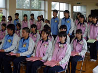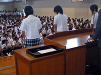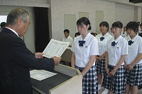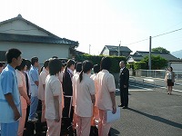| 本校の看護学科基礎課程2年生は,2週間の施設実習を終えて7月24日(金)1学期の終業式を午後5時から視聴覚室で行いました。 終業式は,基礎課程2年生全員と関係職員が参加,基礎課程田中善男教諭の司会進行で進められました。 松ヶ野学校長は式辞で,「真夏で初めて施設実習,御苦労様でした。ここにいる基礎課程2年生の皆さんは,文化祭展示部門で文化祭大賞を獲得した『計っていいとも』のテ−マのもと誠に見事な内容を全員で取り組んた情熱漂う雰囲気を持っ皆さんです。1学期はよい結果を残して終了しました。高く評価します。これからの長期の夏休みをリズミカルな生活で身体を大事にして身体を鍛えたくましく成長しましょう。そして,夏休みは,身体にも充分気を付けて,8月31日(月)(平成22年1月8日振替)の2学期の始業式は全員元気で登校してください。」と生徒一人一人に話しかけられました。 その後,荒木淳生徒指導部副部長から「夏季休業中の生活心得」についての話があって終業式は終わりました。 その後,クラスマッチの表彰式を行いました。2年1組はバレ−ボ−ル女子とソフトボ−ル女子の2種目に優勝,2年2組はバレ−ボ−ル女子とソフトボ−ル女子,バスケットボ−ル女子の3種目が3位に入賞していました。その表彰状を各クラス代表に,そして,出水市民大会バドミントン・ダブルス優勝の引地里織・森枝千波(共に2年1組)ペアの表彰状を2人に,直接,松ヶ野学校長は授与されました。 施設実習を終えて2年1組担任餅井由香先生・2組担任山下瞳先生は,「2週間の施設実習,真夏で初めての体験,非常に大変だったと思います。大変御苦労様でした。実習の中でいろんな事を学びましたね。その成果は自分の将来の素晴らしい看護師の基礎として定着してほしいものです。11月に戴帽式・病院実習と続きます。学びの姿勢を大事にして頑張りましょう。」と生徒の皆さんへ述べておられました。 | ||