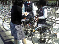 ![]() | 本校では,9月28日(月),13時30分〜約30分,出水警察署と出水市交通安全協会から担当者8名をお迎えして,校内の駐輪場で自転車防犯診断をしていただきました。 当日は,自転車・原付延べ200台余りを1台ずつ丹念に点検されました。防犯登録またはグッドライダー登録された,二重ロック車両は合格です。しかし,何らか不備のある車両には該当項目を黄色のシートに指示し,取り付けられました。総評として,