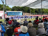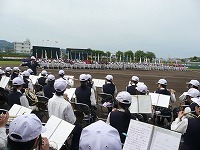 | 本校吹奏楽部は,10月24日(土),長島町の要請で「第13回ながしま造形美術展開会式」で演奏しました。 長島町の川添健町長は,開会式の挨拶の中で,「出水中央高校の演奏を聴き,吹奏楽演奏がこんなにも素晴らしいことを改めて認識しました。そして,演奏している吹奏楽部員の皆さんの笑顔とあいさつ,態度が素敵で本当に明るい雰囲気を提供していただき感謝します。伝統に輝くながしま造形美術展の開会式に華を添えていだき心から感謝します。そして,本町出身の松ヶ野校長先生にもお礼を申し上げます。」と町長挨拶の最初にお述べになりました。開会式に参列の本校の松ヶ野正弘校長は,川添健町長の挨拶に聞き入り,喜びで顔を紅潮させておられました。 第13回ながしま造形美術展での演奏 1 日 時 平成21年10月24日(土)9:45〜10:00(式)10:30〜11:00 2 場 所 長島町鷹巣:太陽の里ピクニック広場(鷹巣城前広場) 3 主 催 長島町企画財政課,第13回ながしま造形美術展実行委員会 4 期 間 10月24日(土)〜11月15日(日) 5 当日の様子
