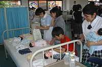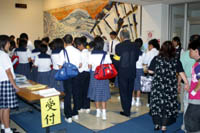 | 本校では,下記の日程で体験入学(学校説明会)を行いました。総勢600名近い人数の中学3年生・保護者・中学校の先生方の参加があり,大変な賑わいを見せました。 1 期 日 8月1日(土)・2日(日),両日とも10:00〜12:30 2 場 所 本校各教室等(野球部の体験入部:出水中央高校専用野球場) 3 内 容 (1) 体験入学内容 @各科・課程の現況の説明,A授業体験(特進課程),B英会話体験(普通課程・教養課程),C実技授業体験(看護学科・医療福祉科),D授業参観(普通課程・教養課程・特進課程) (2) 部活動見学等 13:00〜吹奏楽・野球・サッカー・駅伝部等部活動の練習,寮の見学など 4 まとめ (1) 8月1日(土),原則として熊本県の中学生を対象として,一部地域を除き,スク−ルバスや観光バスで送迎して行いました。 (2) 8月2日(日),原則として鹿児島県の中学生を対象として,一部地域を除き,スク−ルバスや観光バスで送迎して行いました。 内容・展開は,本校職員の説明や授業と共に先輩に当たる本校生が随所に出て実習や説明をしていましたので参加した中学生は,親近感を持って全員が熱心に取り組んでいました。 暑い真夏の移動で大変だったと思われます。参加していただいた多数の中学生と保護者・中学校の先生方は,冷房の涼しい中で行いましたので全員元気で,本校の各科・課程の具体的な体験をされ,各科・課程の特色を丸ごと理解していただいたものと思われます。 また,8月2日(日)の午後には,野球部の体験入部も併せて実施され,午前中の各科の説明に引き続き,本校専用野球場にて,キャッチボール・バッティング練習・ピッチング練習・内外野のノック練習など,初めての硬式野球に触れ,汗を流しました。 体験入学に御参加いただいた皆様,大変ご苦労様でした。 次回の体験入学は,10月17日(土)に実施の予定です。 お分かりにくいことがありましたら,御連絡ください。 (学校代表:0996−62−0500,入試専用:0996−62−6677) なお,吹奏楽部の体験入学は,8月29日(土)午前9時30分から行います。 | ||