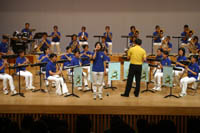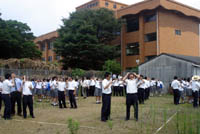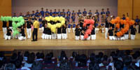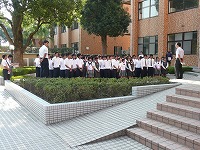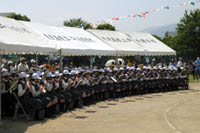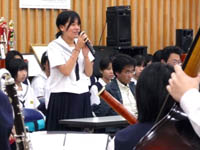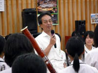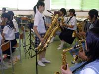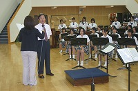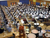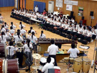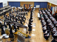 (1) 日 時 平成21年5月24日(日)12:30 〜 17:00 (2) 場 所 本校の吹奏楽練習ホール・吹奏楽室・音楽室・普通教室 当日は,先ず,開会式を本校吹奏楽部庶務係出水春佳さん(教養課程2年)の司会で展開しました。開会式では,本校の松ヶ野正弘校長・鎌田和花部長(教養課程3年)の歓迎あいさつ,出水中学校吹奏楽部顧問南哲人先生・米ノ津中学校吹奏楽部顧問清田かおり先生・副顧問の池川和昭先生・出水中学校吹奏楽部長本村瑞紀さん・米ノ津中学校吹奏楽部部長西郷将生君のあいさつがありました。本校パート紹介,日程説明などと続きました。早速,本校吹奏楽部の歓迎演奏に入り,『詩人と農夫』,『七夕』などを演奏しました。その後,パート練習,合同練習と続き充実の合同練習となりました。 出水中学校・米ノ津中学校の両校は,昨年7月5日(土)に阿久根中学校3校合同で訪問されて以来の合同練習となりました。御苦労様でした。 | ||