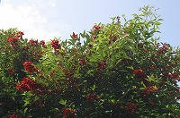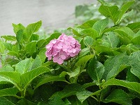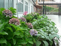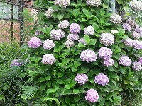 | 梅雨の風物詩『アジサイ』は,本校の保健室棟(かまぼこ校舎)の南側の花壇や教養館の南側のフェンスの一角に,鮮やかな紫色に咲いています。 『アジサイ(紫陽花)』は,広辞林(三省堂)によりますと,「葉は大きい卵形でつやがあり,縁にぎざぎざがある。初夏,大きな半球形にかたまった花が咲き,始め白みかがった空色であるが,しだいに青が濃くなり,更に薄赤色に変わる。」とあります。 出水地方は,梅雨で雨が見られるようになり,何となくうっとおしい日が続いています。この時に鮮やかに咲いている『アジサイ』は,気持を晴れさせてくれるようです。 6月28日(日)午前11時,小雨降る時の撮影 | ||