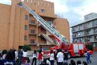 | 本校の第二女子寮,第三女子寮,男子寮の3寮では,6月27日(土)午前9時から出水地区消防組合本部職員の御指導で避難訓練を行いました。 避難訓練は,(1)火災発生時の伝達・通報要領,(2)初期火災要領,(3)誘導避難要領(消防組合本部はしご車避難訓練),(4)人員の掌握・確認,(5)消火器の取り扱い操作要領(消防組合本部職員指導)を行いました。 当日は,3寮生211名(野球部・サッカー部の41名は練習のため不参加)が参加し行われました。梅雨の晴れ間の素晴らしい天候の中で,出水地区消防組合本部職員3名の御指導と各寮監・寮母,そして,松ヶ野正弘校長,田中善男・石内美和子・武田弘毅・外薗あかり・古川しげみ寮顧問の指導でてきぱきとマニュアルに従って行いました。寮生のみなさんの行動が素晴らしく,気持ちのよい避難訓練でした。特に,はしご車の避難訓練は,2名1組で5組が実際に第三女子寮屋上から避難の訓練でしたが,はしご全長30mをすべて延ばしての訓練もあり圧巻でした。 松ヶ野学校長は,「いつ災害や事故が起こるか分かりません。発生した場合は,多くの寮生の生活している寮ですので,今日の訓練を生かして事故がないように行動してください。『備え有れば患い無し』。」と全員に語り掛けられました。 なお,第一女子寮の避難訓練は,4月29日(祝)に実施しました。 | ||