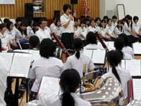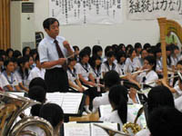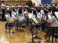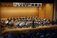 | 2 鹿児島市立伊敷台中学校吹奏楽部との合同練習会 (1) 日 時 平成21年6月28日(日)9:30 〜 16:00 (2) 場 所 本校の吹奏楽練習ホール・吹奏楽室・音楽室・普通教室 当日は,先ず,開会式を本校吹奏楽部庶務係出水春佳さんの司会で展開しました。開会式では,本校の松ヶ野正弘校長・鎌田和花部長の歓迎あいさつ,伊敷台中学校吹奏楽部顧問坂下武巳先生・伊敷台中学校吹奏楽部長丸山南さんのあいさつがありました。本校パート紹介,日程説明などと続きました。次に,本校吹奏楽部の歓迎演奏で,『詩人と農夫』,『七夕』,『MICKEY』の3曲を演奏しました。その後,パート練習,県吹奏楽コンクール課題曲などを合同で練習しました。 初めて伊敷台中学校吹奏楽部の皆さんと訪問された顧問の坂下武巳先生は,「素晴らしい環境の中で練習している出水中央高校の皆さんをうらやましく思います。演奏だけでなく,部員の皆さんの挨拶や行動の全てに学ぶ点が多く,充実した一日になり感謝します。」とコメントを残して,本校を後にされました。 当日の朝,鹿児島市は雷雨の激しい天候でしたが,予定どおり9:20到着され,晴れ間の見られる出水で充分練習をして帰られました。御苦労様でした。 | ||