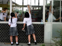 | 本校では,「肥薩おれんじ鉄道・西出水駅」の12回目の清掃ボランティアを7月3日(土)午後1時から約1時間行いました。 今回は,西出水駅を利用している生徒の中の3年生42名と3年担任・ボランティア係の職員9名が,学期末考査終了後の午後1時から,(1)男女トイレの便器,(2)待合室のガムの除去や窓ガラス,(3)駅舎とその周辺の除草 ,(4)ホームなどを入念に行い,草やちりなどをビニール袋に入れて学校へ持ち帰りました。当日は,肥薩おれんじ鉄道の職員の方も4名お越しになり,お礼のことばをいただきました。 松ヶ野正弘学校長は,「西出水駅が平成16年,『肥薩おれんじ鉄道』になってすぐ,駅舎等が荒らされている報道があり,自分たちの西出水駅を綺麗にしたいとの思いで清掃奉仕作業を平成16年12月17日(金)に取り組んでから今回で12回目になります。皆さんの努力で西出水駅が綺麗に利用されていることを嬉しく思います。3年生にとりましては,最後の西出水駅の清掃ボランティアになりました。ご苦労様でした。」とあいさつをされました。 | ||