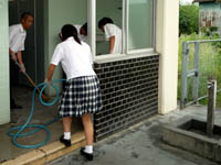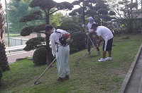 | 本校では,今日(28日・金),午前8時10分から11時半過ぎまで,全職員と部活動で登校している生徒の皆さんで「環境整備」を行いました。 恒例の職員作業は,全職員の外に部活動で登校しているサッカー・野球・男子駅伝・柔道・バレーボ−ル・ソフトテニス・吹奏楽部,そして,登校している生徒の皆さんの手伝いにより校庭や土手の除草,グラウンドの除草,校庭のタイル磨きなどを行いました。これら一連の作業は,2学期に登校する生徒の皆さんに美しい環境で安心して学校生活が出来るようにと願って毎年この時期に行っています。8月31日(月)から始まる2学期に備えて,いつものように綺麗な環境になりました。 今日(28日・金)は,残暑の厳しい天気の中,途中で水分補給をしながら頑張り,誠に綺麗になりました。美しく環境整備された学校は,新学期の初日(8月31日),生徒の皆さんを気持良く迎えることでしょう。 | ||