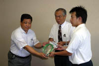 本日午後1時,鈴木芳昭警部補(出水警察署生活安全刑事課)と長坂克壽事務局長(出水市防犯協会)が本校校長室を訪れ,自転車盗難防止用ワイヤー錠125人分を寄贈されました。