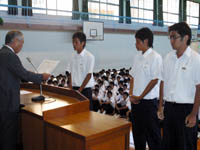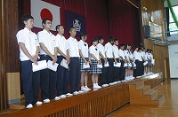 | 本校では,8月31日(月),8時45分から2学期の始業式の後に,下記の2部の表彰を行いました。 吹奏楽部は,第54回鹿児島県吹奏楽コンク−ルで金賞(5年連続金賞受賞)・3年連続出場の54回九州吹奏楽コンク−ルで金賞を受賞しました。また,サッカ−部は,第19回鹿児島県高等学校サッカ−1年生大会で3位に平成14年以来,2回目の入賞をしました。 1 吹奏楽部 ○第54回鹿児島県吹奏楽コンク−ル金賞(5年連続金賞受賞) 平成21年7月31日(金)午後3時55分 〜 午後4時07分(29番目) 鹿児島市市民文化ホ−ル 参加校:高等学校の部Aパ−ト32校(九州大会へは3校出場) 演奏曲目:課題曲⇒W マーチ「青空と太陽」(藤代敏裕作曲) 自由曲⇒歌劇「トゥ−ランドット」より(G.プッチーニ作曲,後藤洋編曲) ○第54回九州吹奏楽コンク−ル3年連続出場(金賞受賞) 平成21年8月23日(日)午後2時45分 〜 午後2時57分(午後最初) 福岡サンパレスホテル&ホ−ル 参加校:高等学校の部26校(全国大会へは3校) 演奏曲目:県大会と同じ曲 2 サッカ−部 ○第19回鹿児島県高等学校サッカ−1年生大会(3位入賞) 平成21年8月21日(金)〜23日(日) 各地区代表20校(本校は北薩地区第1位代表) Dパ−ト(予選リンク)第1位 本校4対0甲南,本校3対0国分,本校3対0鹿児島中央,本校7対1尚志館 決勝ト−ナメント 準決勝=本校0対3鹿児島城西高校,3位決定戦=本校3対0神村学園高等部 ☆本校は,3位に入賞しました。 平成14年度(サッカー部が強化部に指定された年)大会以来2回目 | ||